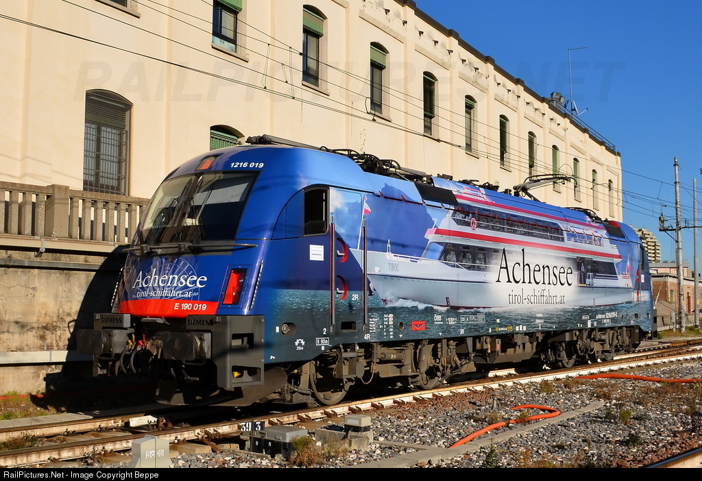 | In the picture a loco "Taurus" of ÖBB: 1216 019 (E-190-019) in isolated maneuver to go to parked, had arrived shortly before in front of a EuroCity train coming from Munich-HBF in Germany.