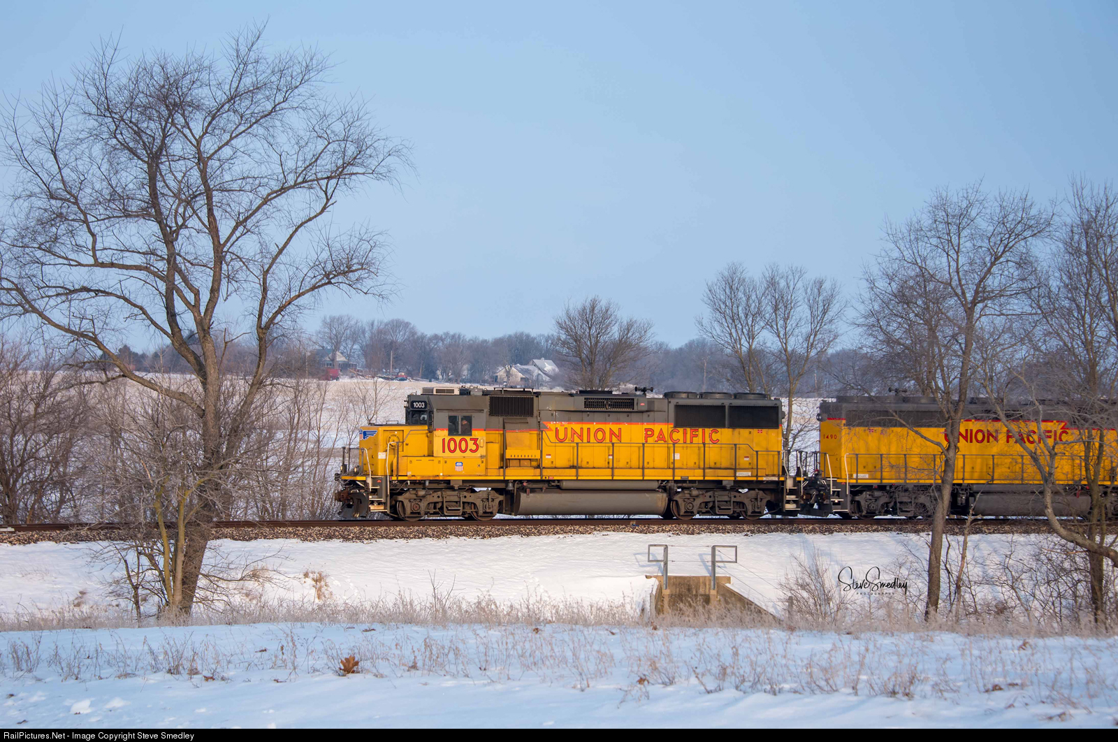 Union Pacific Railroad's South Local, LSF54, based out of Bloomington, Illinois, flys along the former Alton Route as it approaches Lazy Row South of Atlanta, Illinois. The South-bound local only has three cars and will turn back North after working Lincoln, Illinois industries, on this cold Thursday, 24 January 2019. Steve Smedley