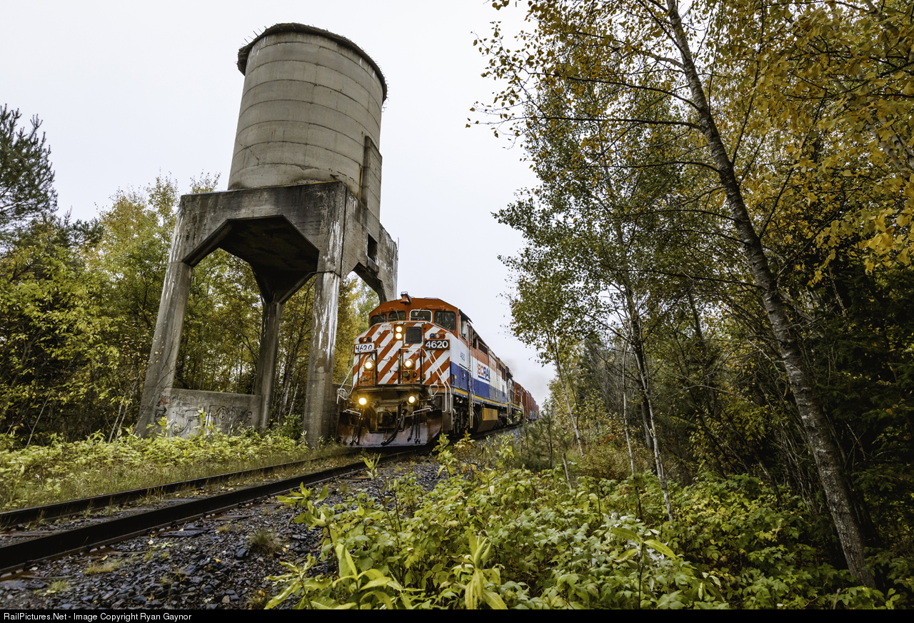| Having long outlived her intended purpose, a 1930s-era coaling tower stands guard over Canadian National's Hunstville Subdivision as North bay-bound train no. 451 cuts through the morning mist in the sleepy town of South River, ON. |