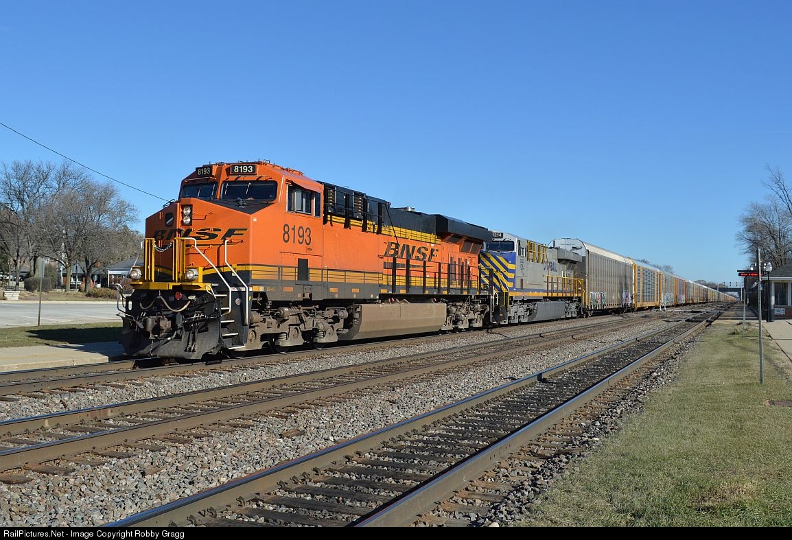 BNSF 8193 leads a auto train west through Clarendon Hills.