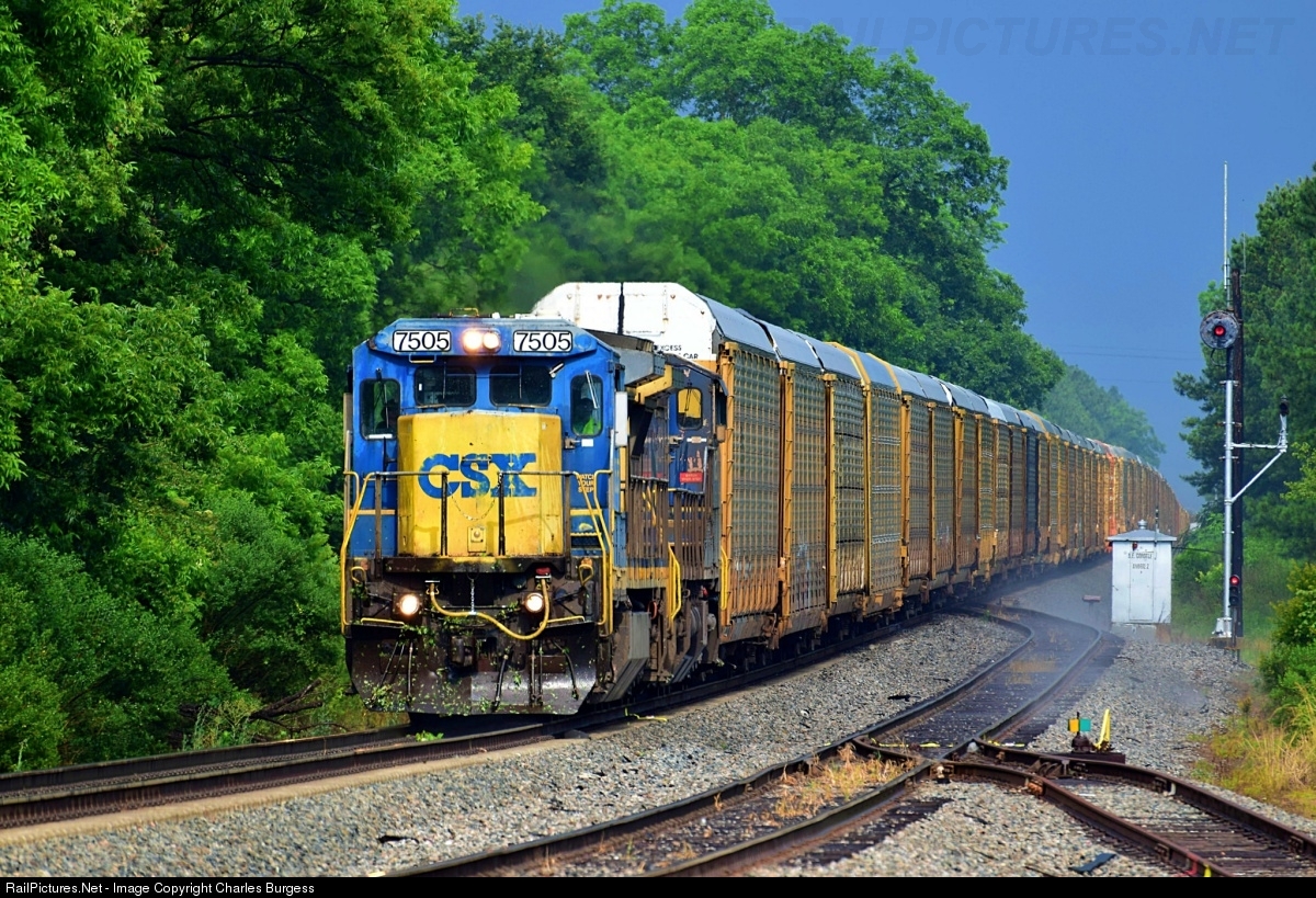 A Waycross, GA to Talladega, AL autorack train hurries past the searchlight signal at South End Cordele siding. You can still see, on the plow, pieces of a tree that Q286 hit after a powerful thunderstorm rolled through the area. The lead locomotive, the ACL era signal, and the train ID are all gone today.