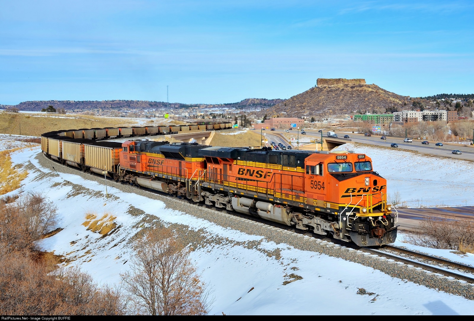 | After passing through Sedalia, Colorado, BNSF 5954 (ES44AC) leads the train through Castle Rock on its way to Palmer Lake. |
