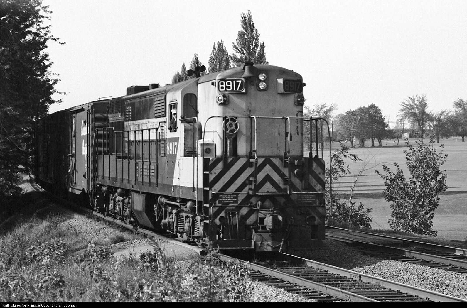 | The Trainmaster normally assigned to Hochelaga transfers is heading to Lasalle. It is leaving St. Luc Yard and is on the Farnham Connection moving through the Wentworth Golf Course, which was owned by CP. |