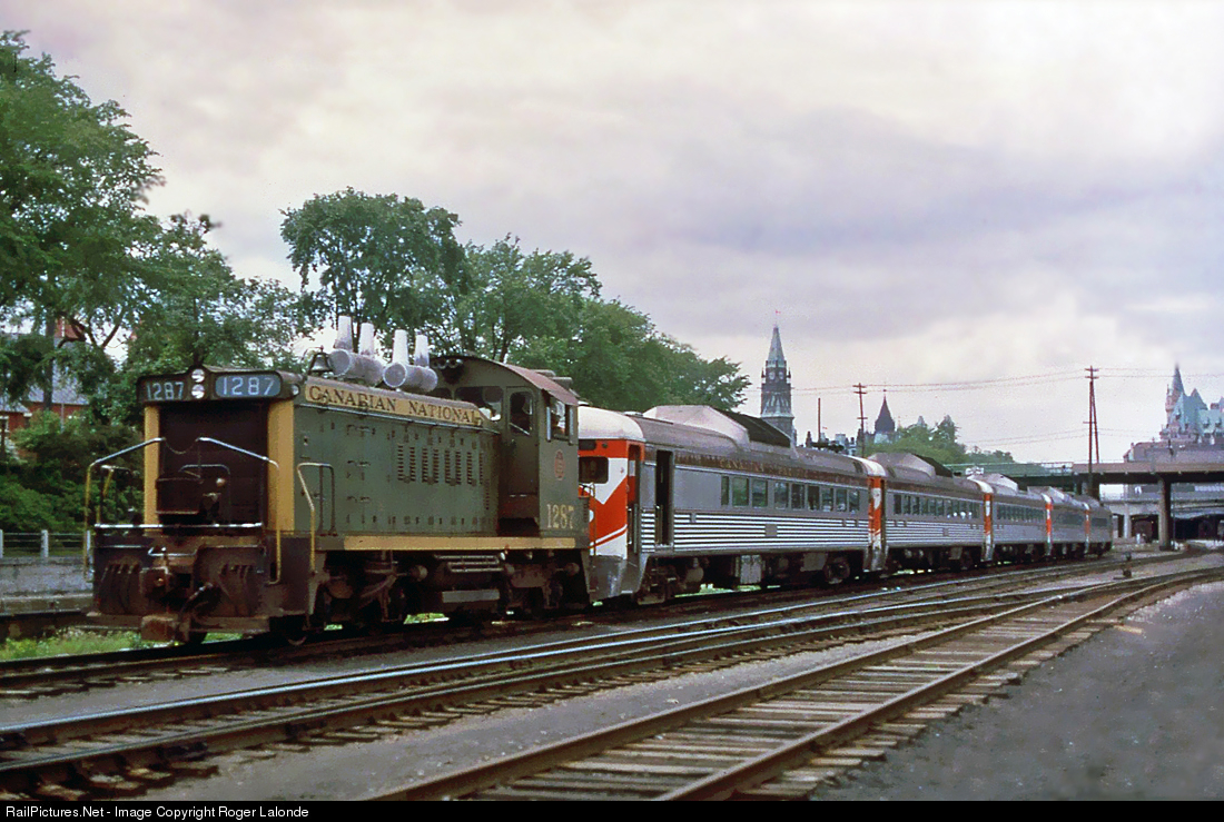 Canadian National GMD SW1200RS 1287, switching (5) Canadian Pacific RDC's at Ottawa's Union Station on June 19, 1966. Photo taken from my slide collection, no photographers name on slide.