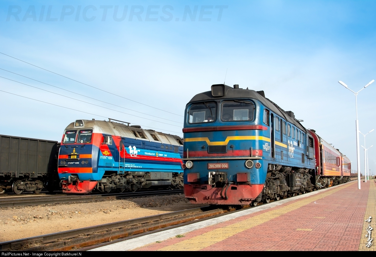 RailPictures.Net Photo: 004, 0256 Mongolian Railway 2M62MM, 2TE25Km at Airag, Mongolia by Batkhurel.N