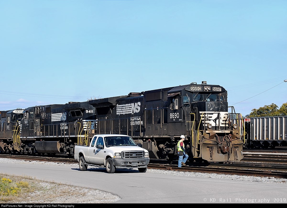 It's a cool beautiful October afternoon at Debutts Yard in Chattanooga, TN, and the power of NS 131 (Knoxville,TN-Chattanooga,TN) is sitting idle on the diesel shop lead waiting for the diesel hostler to come and retrieve the motor set. While the U-man utility man for short, is about to cross over the lead, and receiving track to hang a blue flag, we're once again looking at a shining example of railroads getting their money worth out of their equipment. An 8600 series Dash 8-40C is soaking up the sun, and by the looks of this old motor it's seen better days.