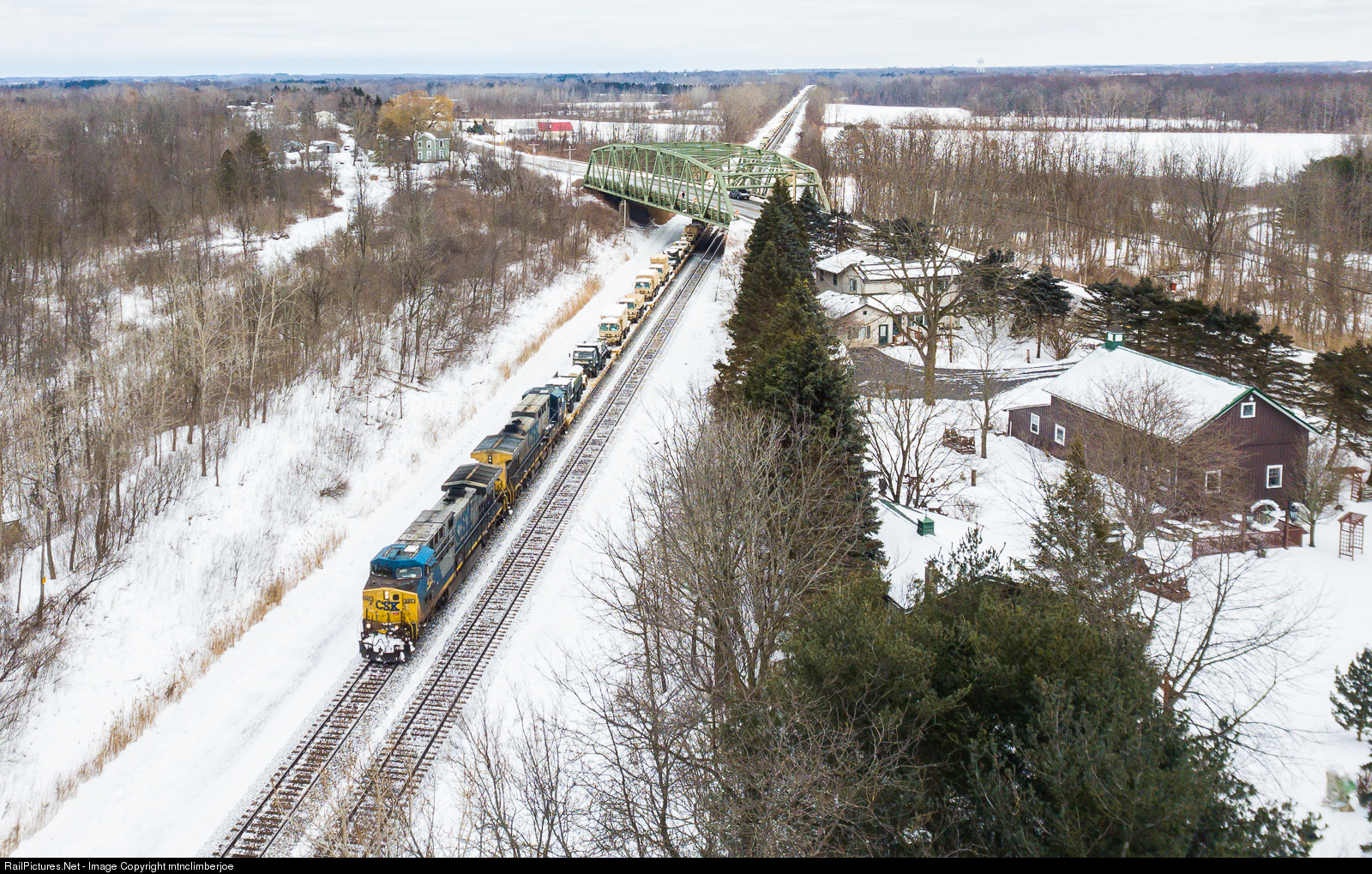A pair of YN2 AC4400's lead loaded military train W809 bound for New Orleans from Fort Drum as it passes under the Route 33 bridge in Bergen, New York on a bitterly cold day.