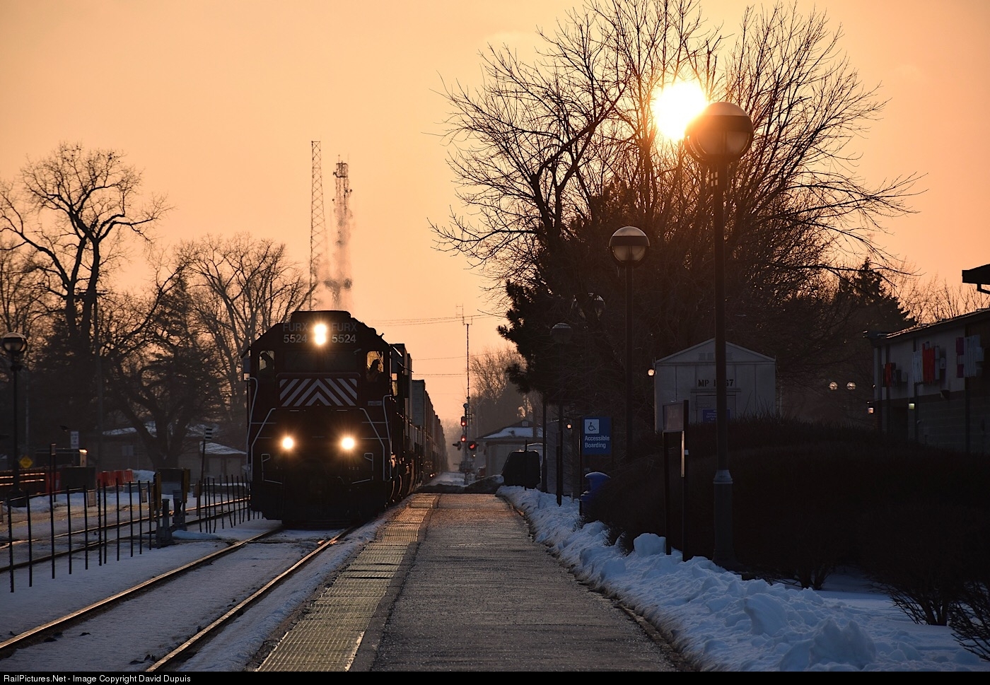 FURX 5524 takes an intermodal transfer through Oak Lawn on the old Wabash mainline during the day’s last light.