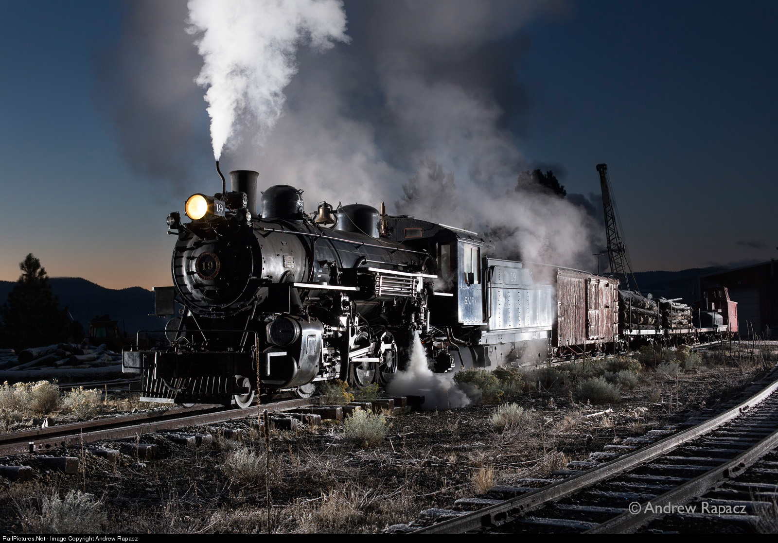 #19 is ready to head for the depot at McEwen with a freight train shortly before sunrise on the first day of the Sumpter Valley Railroad's photographers weekend 14/10/17