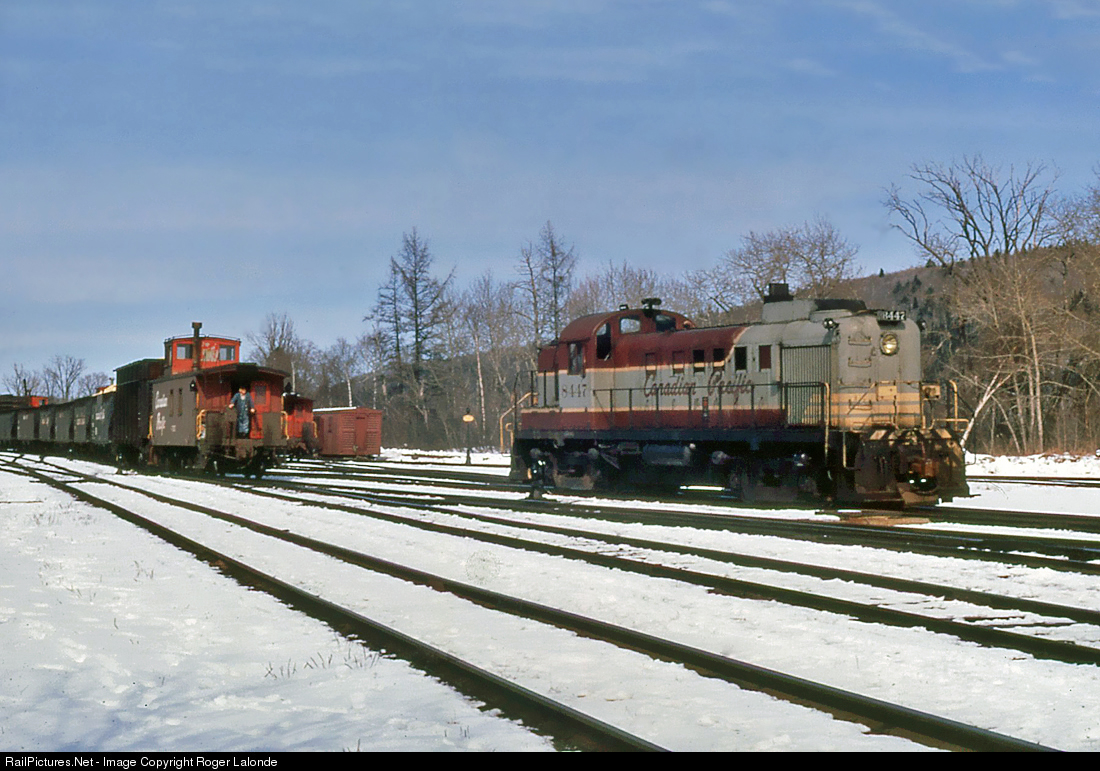 Canadian Pacific MLW RS-3 8447 switching cars at Aroostook Jct., New Brunswick in March of 1970. Photo from my collection, no photographer information on slide.