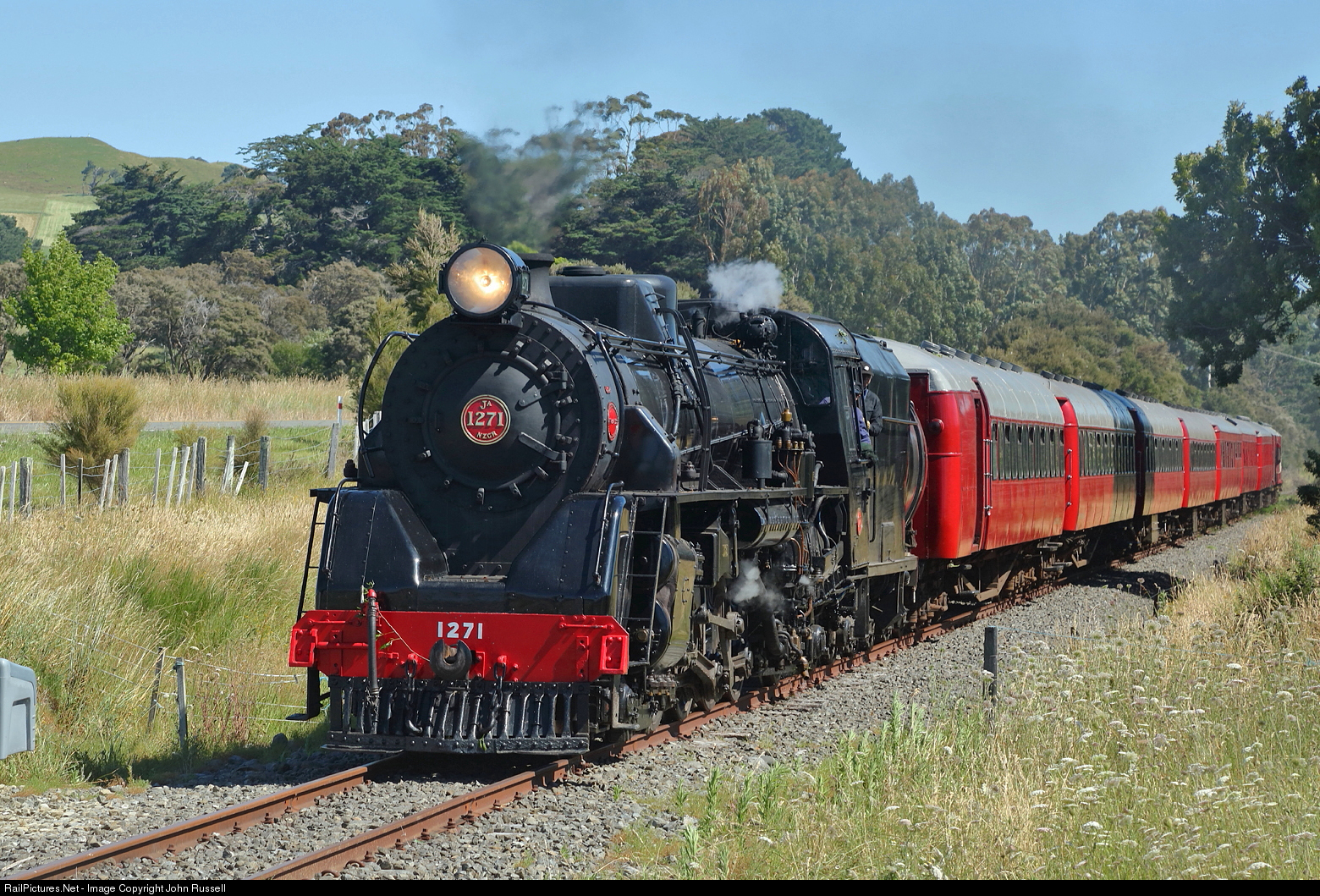 After being withdrawn in 1970, Steam Incorporated bought and restored 1271 which returned to the rails in 1997. The heritage train is on the homeward run to Paekakariki depot from Masterton, one of just 2 or 3 special trains over the "mothballed" section to Pahiatua.