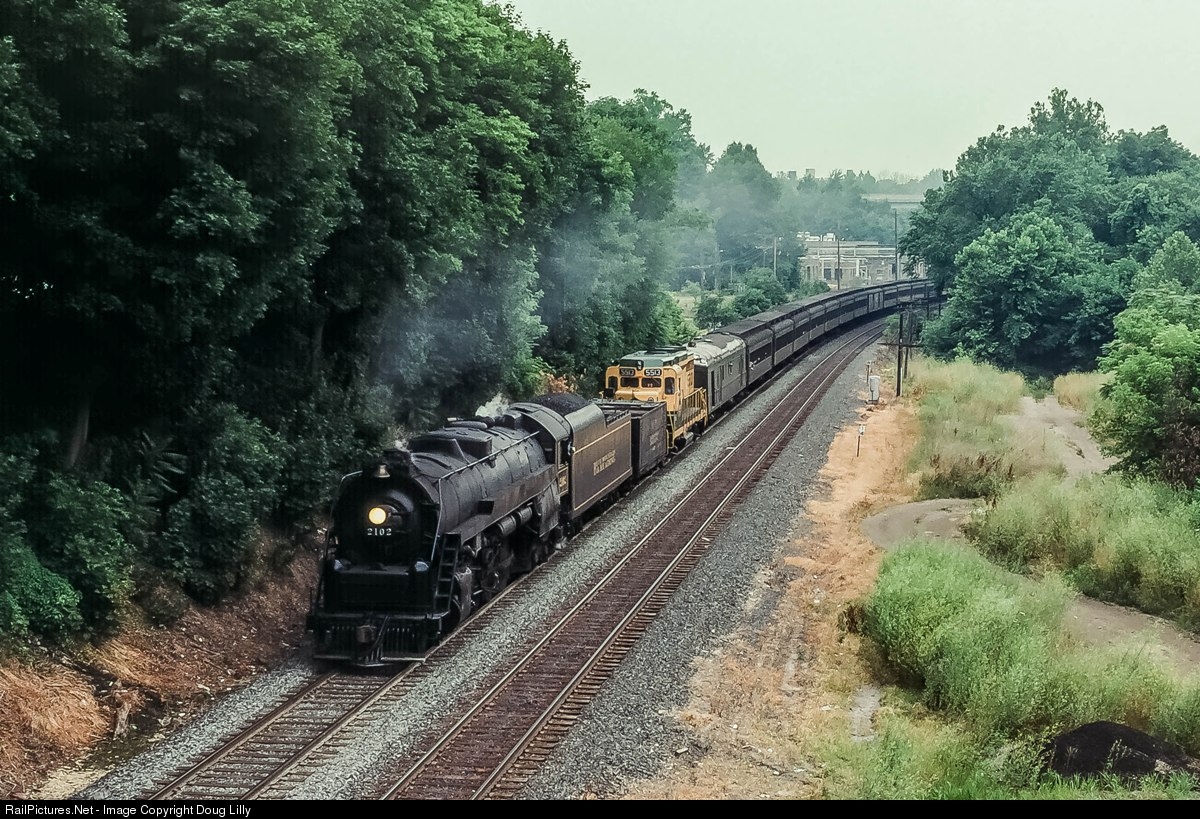 On July 9, 1988, the Blue Mountain and Reading ran an excursion from Reading to Philadelphia on Conrail’s Philadelphia main. Reading T-1 2102 was featured, and Reading Technical & Historical Society’s restored GP30 was added as protection power. Here the train approaches Conshohocken, Pennsylvania on the eastbound journey.