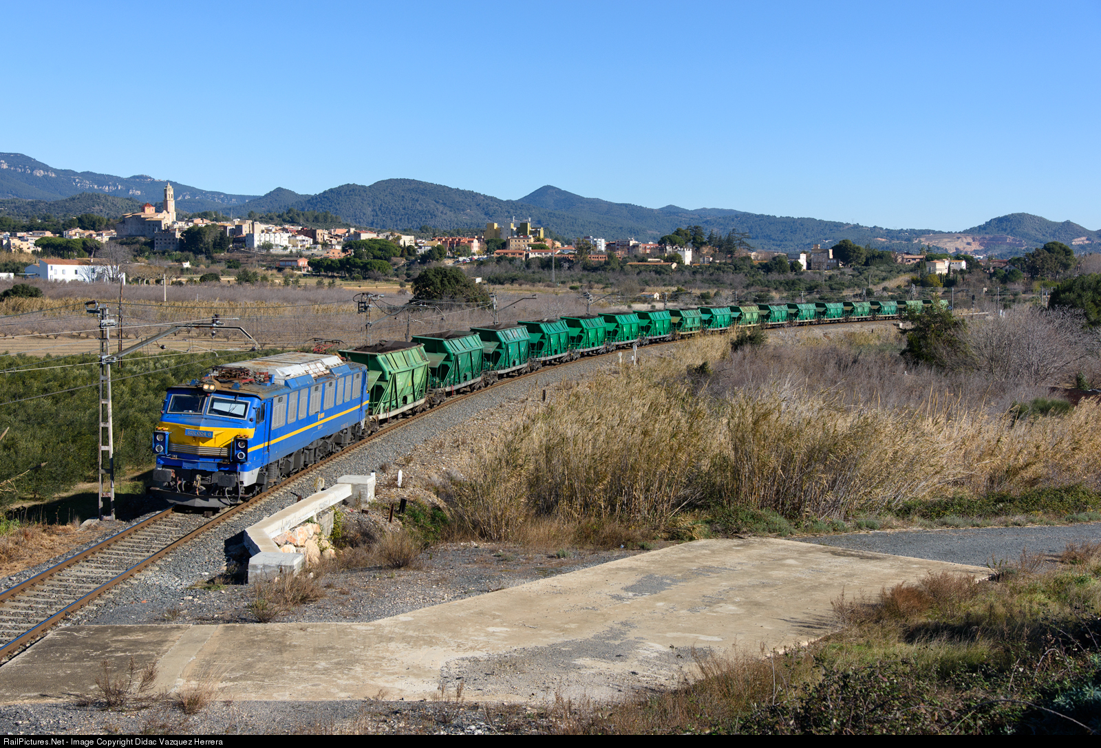 | Loaded coal train from tarragona to Samper de Calanda, with Mitsubishi 251.004 in original state, near Les Borges del Camp. |