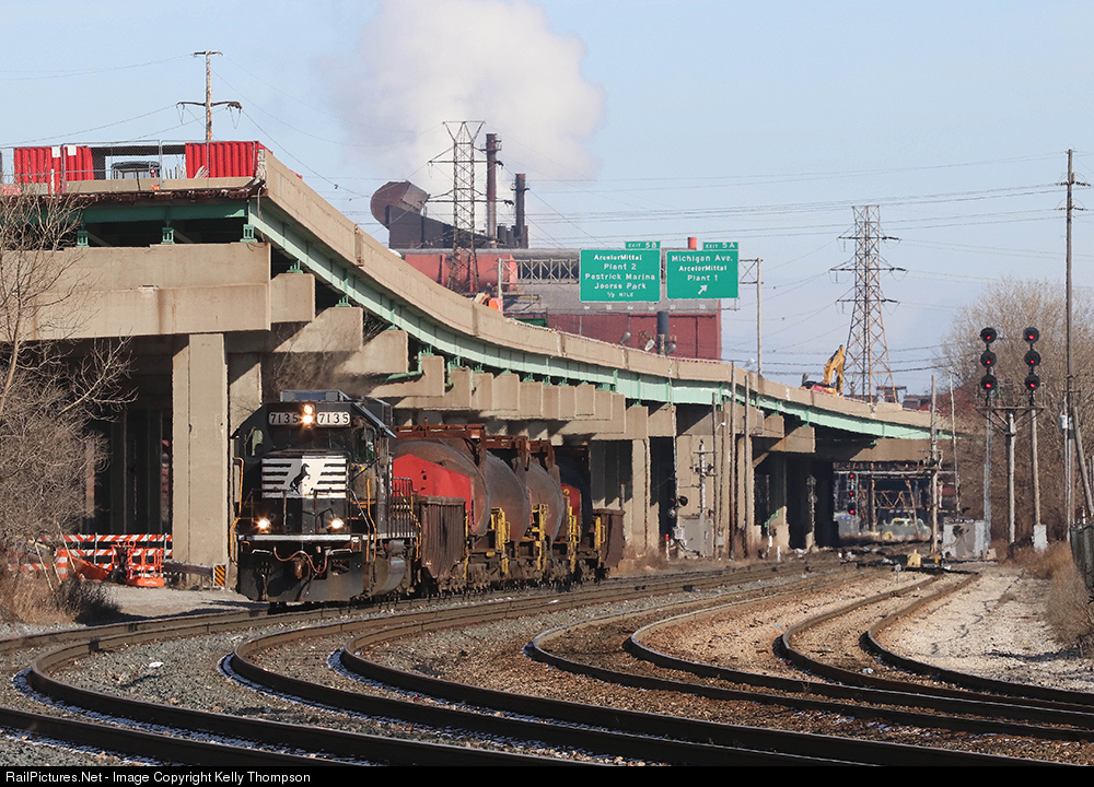 NS 7135 leads the NS bottle train south out of East Chicago, Indiana.