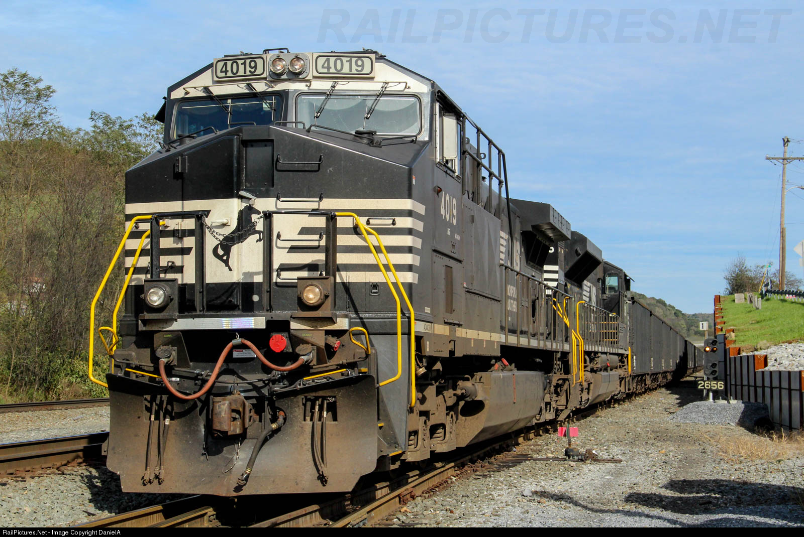 | AC44C6M #4019 sits tied down at the head end of a coal train in South Fork, PA. Note the PRR era dwarf signal to the right. We also had permission from the crew to be that close (we knew the engineer). |