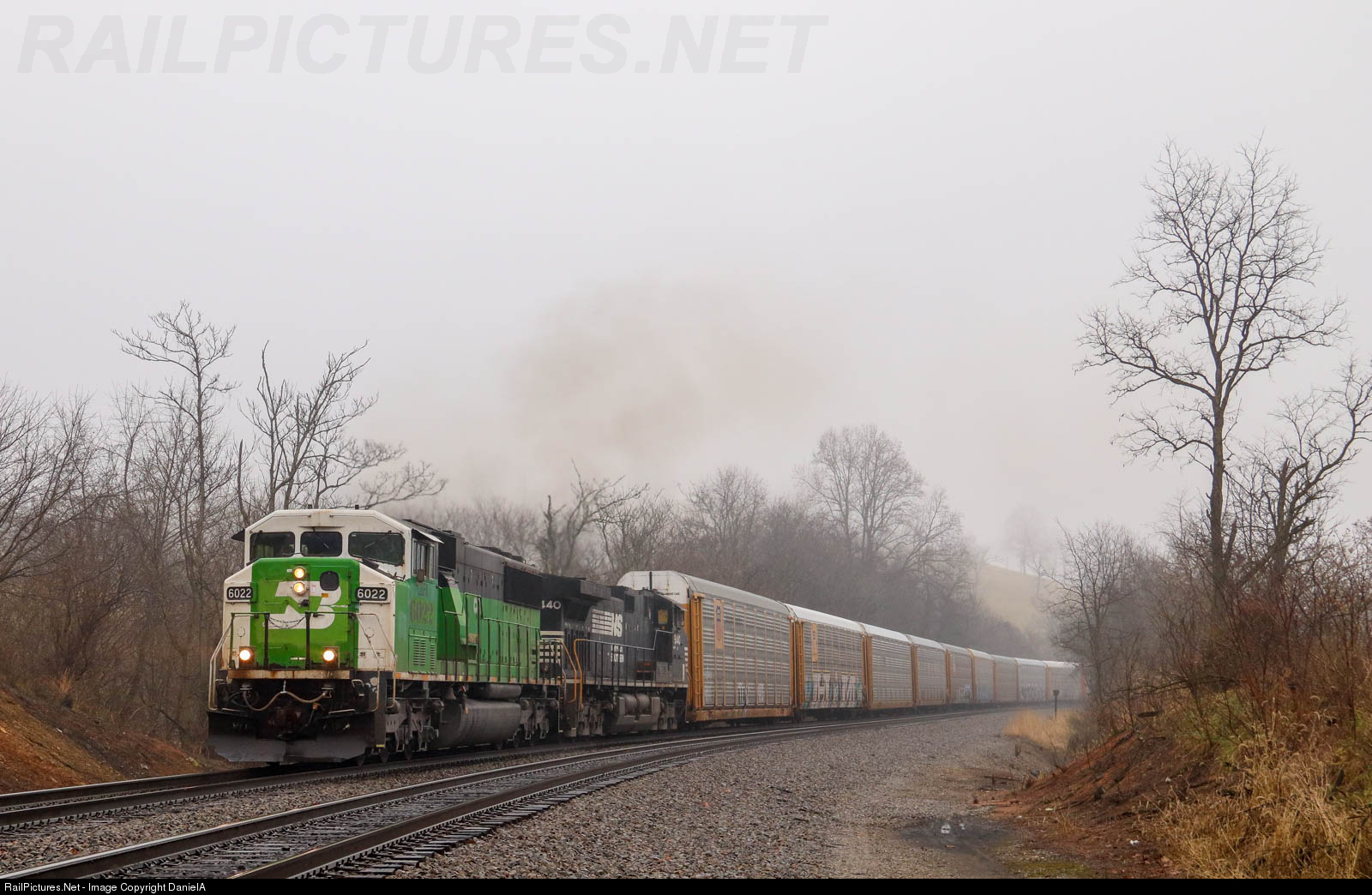 | The final day of 2018 provided a nice surprise on the head end of NS 29J. A CBFX (ex-Burlington Northern triclops) leads its train westbound through a foggy Shawsville, Va. |