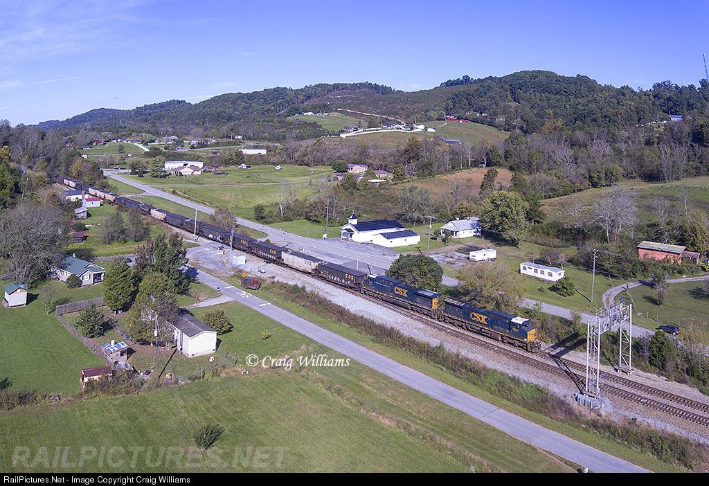 This eastbound coal train bound for Kingsport has just worked hard between MP 28.3 and MP 32.4 to get up the 1.50% on the NS Appalachia District. 2 SD70ACE's have been on the rear end of this train since they left Loyal, KY, to help out on all the different heavy grades this train has climbed to get this far. Now the journey ends here at Watkins for the helpers. The train will stop, the helpers will cut off, and head back to Loyal for an afternoon shove. The CSX uses 43 miles of NS trackage from Big Stone Gap to Frisco to get from the CV Sub to the Kingsport Sub.