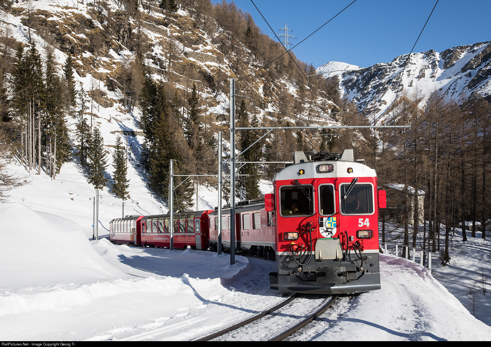 RailPictures.Net Photo: 54, 56 RhB - Rhätische Bahn ABe 4/4 at Alp Grüm, Switzerland by Georg Trüb