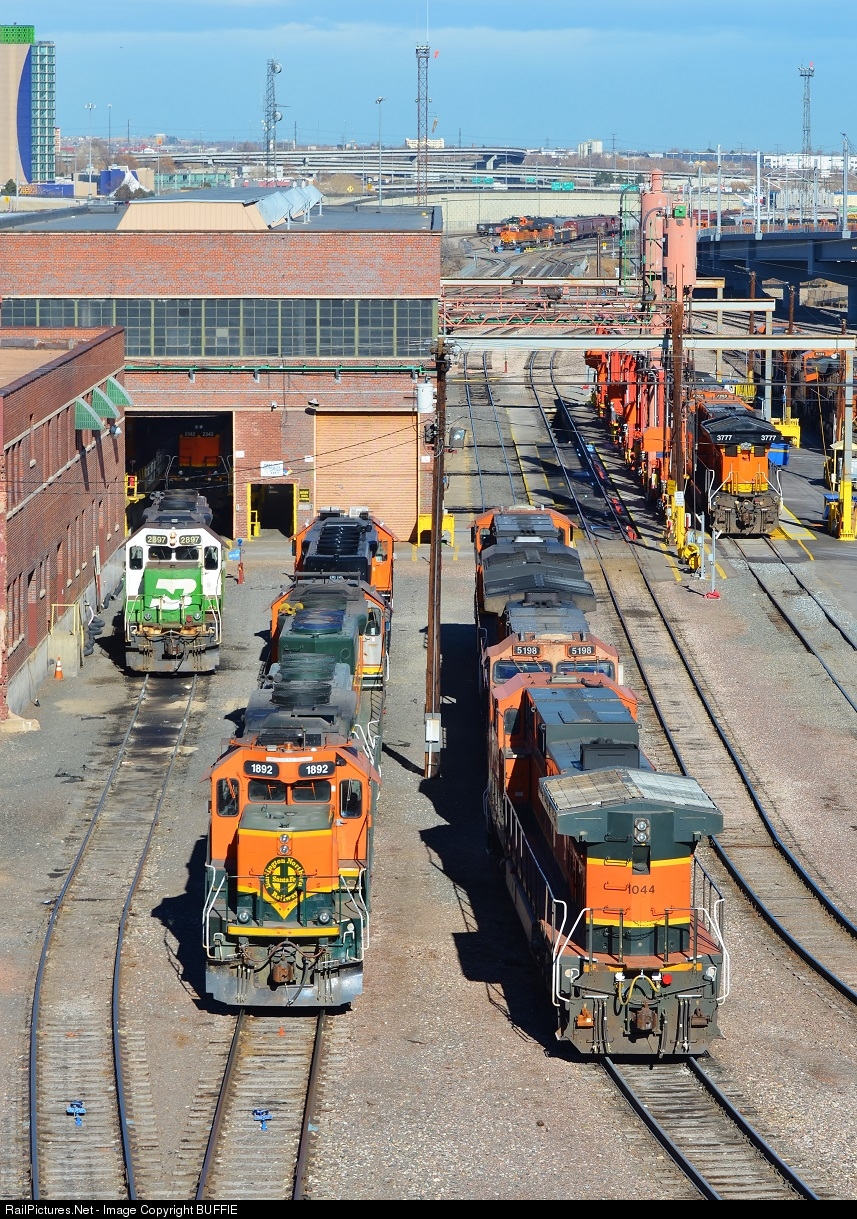 BNSF 2897 (GP39M) waits its turn for servicing at the Denver facility.