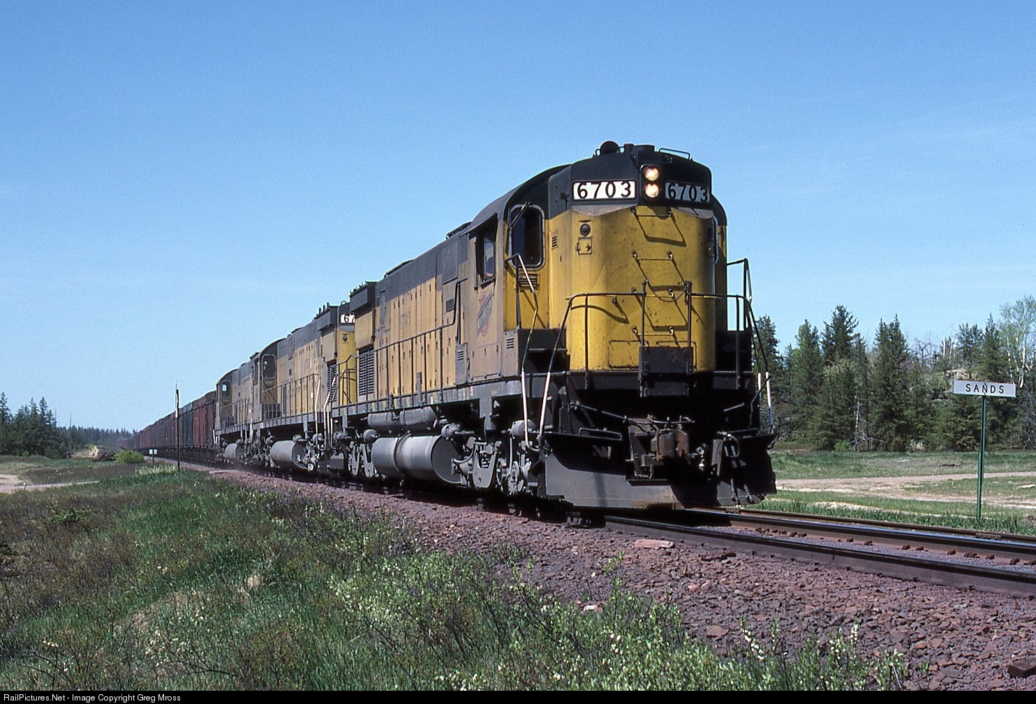 RailPictures.Net Photo: CNW 6703 Chicago & North Western Railroad Alco C628 at Sands, Michigan by Greg Mross