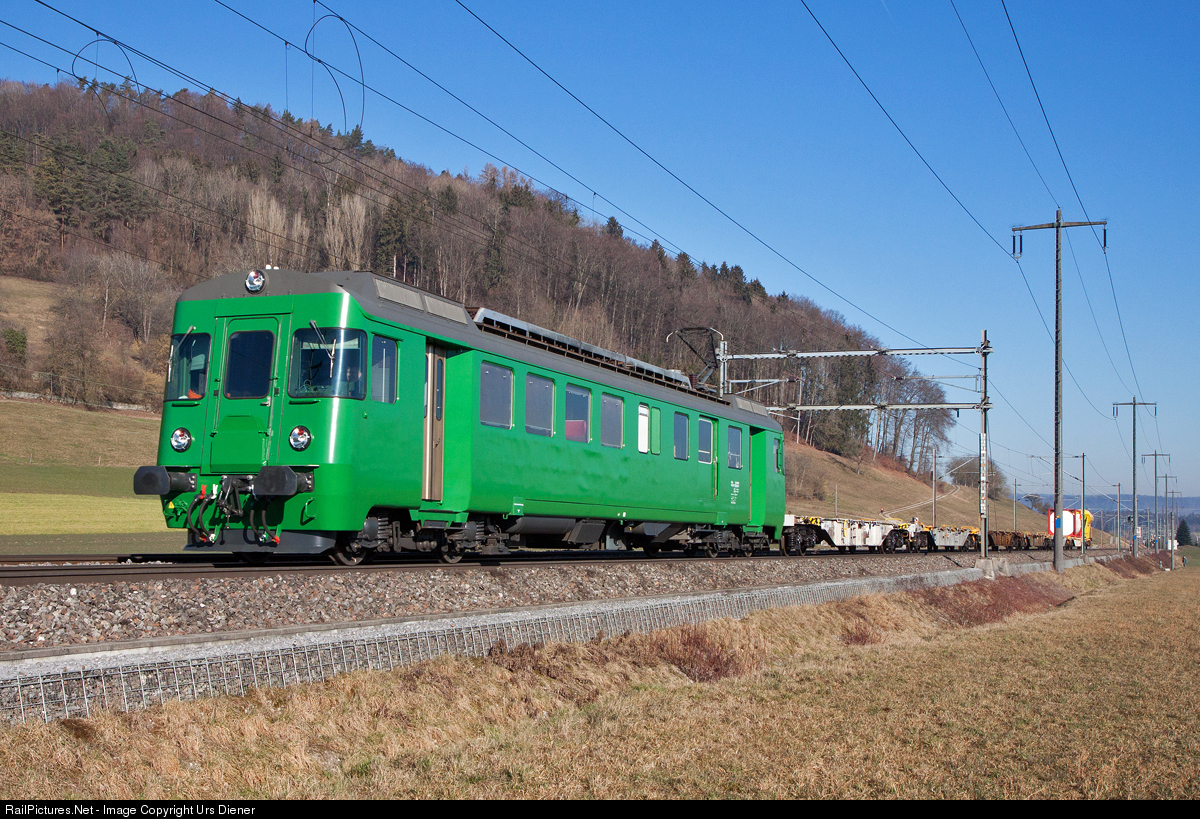 | Former SOB Südostbahn railcar BDe 576 059, now owned by Makies AG, is pulling the Swiss Rail Trafic freight train 69139 from Rekingen AG to the Limmattal shunting yard. |