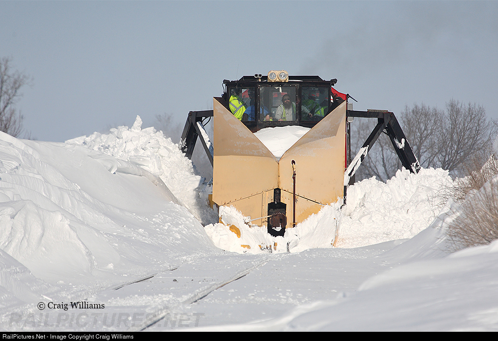 The CN ran their Jordan Spreader down their 42 miles Cedar Rapids Sub on Thursday February 21. The job worked at pushing back drifts along this branch. Winter has been pretty steady in this part of eastern Iowa, so the drifts are getting too much for the snow fighter to move. This Jordan Spreader hasn't seen any action for a few years since the winters around Iowa have been lite. Here the job pushes the drift back at MP 12 between Ryan and Coggon. Some drifts required 2 passes, most of them were south of Ryan like this will need.