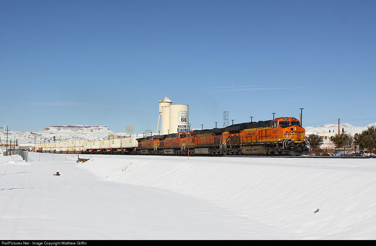 RailPictures.Net Photo: BNSF 3827 BNSF Railway GE ET44C4 at Kingman, Arizona by Matthew Griffin
