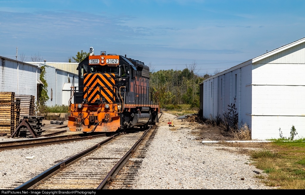 Wheeling 3102 reverses back toward the main in Medina after working Plasti-Pak on a Sunday afternoon.