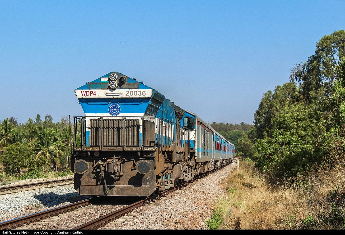 Krishnarajapuram WDP-4 having a roller coaster ride as it climbs a gradient after Dodbele powering Shivamogga Town-Yeshwantpur Jan Shatabdi express. |