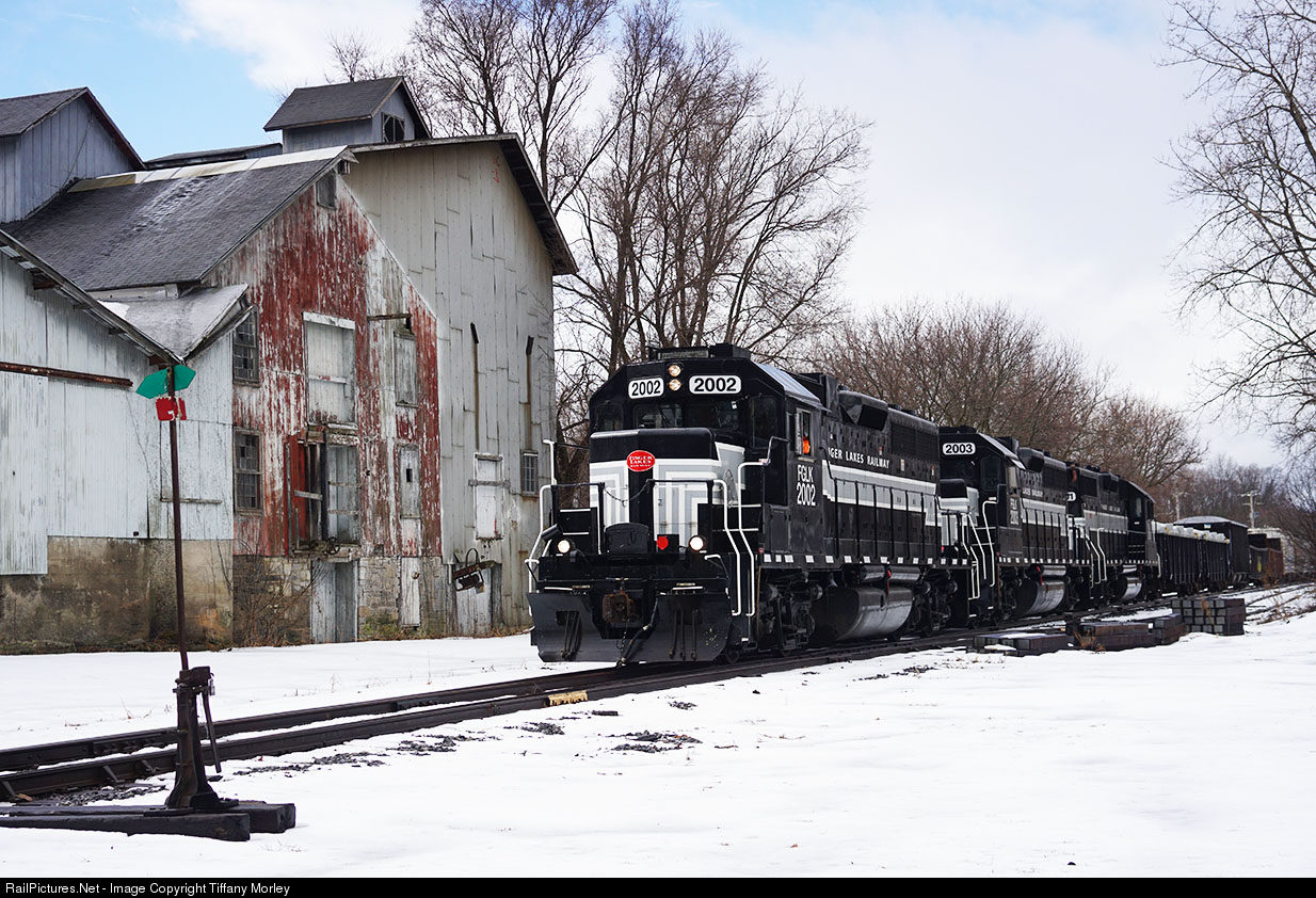 | Finger Lakes Railway heads East in the morning for Solvay, a suburb of Syracuse. Locomotives: FGLK 2002, FGLK 2003, FGLK 2001 |