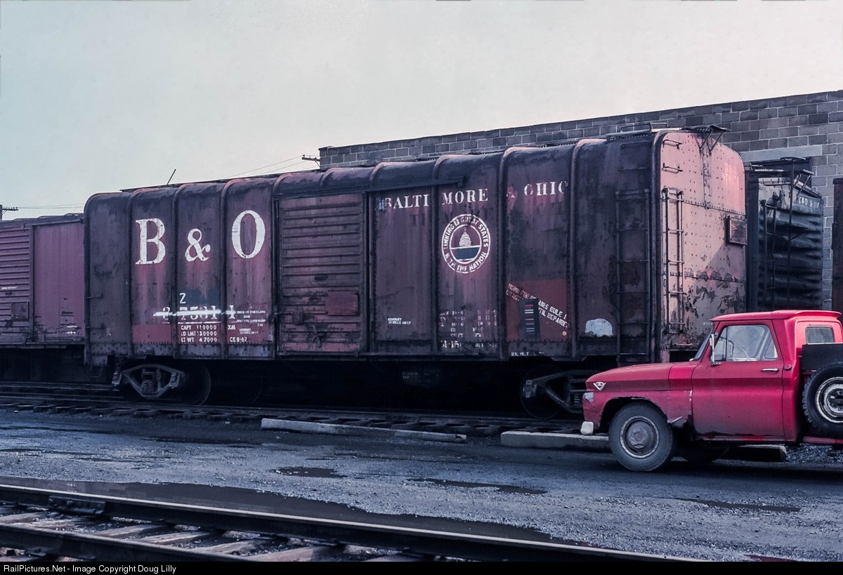 There are few freight cars that are more distinctive than the B&O’s “wagontop” box cars. Conceived out of the necessity to replace older double-sheathed boxcars with steel ones, the class M15K wagontops, were constructed at Mount Clare with new fabricated steel bodies on the older double-sheathed cars’ underframes. Although I remember seeing them in trains as a kid, the wagontops had pretty much disappeared from revenue service before my photography days. Here is former B&O 375311, white-lined and in storage service, sits within the Cumberland shops complex.