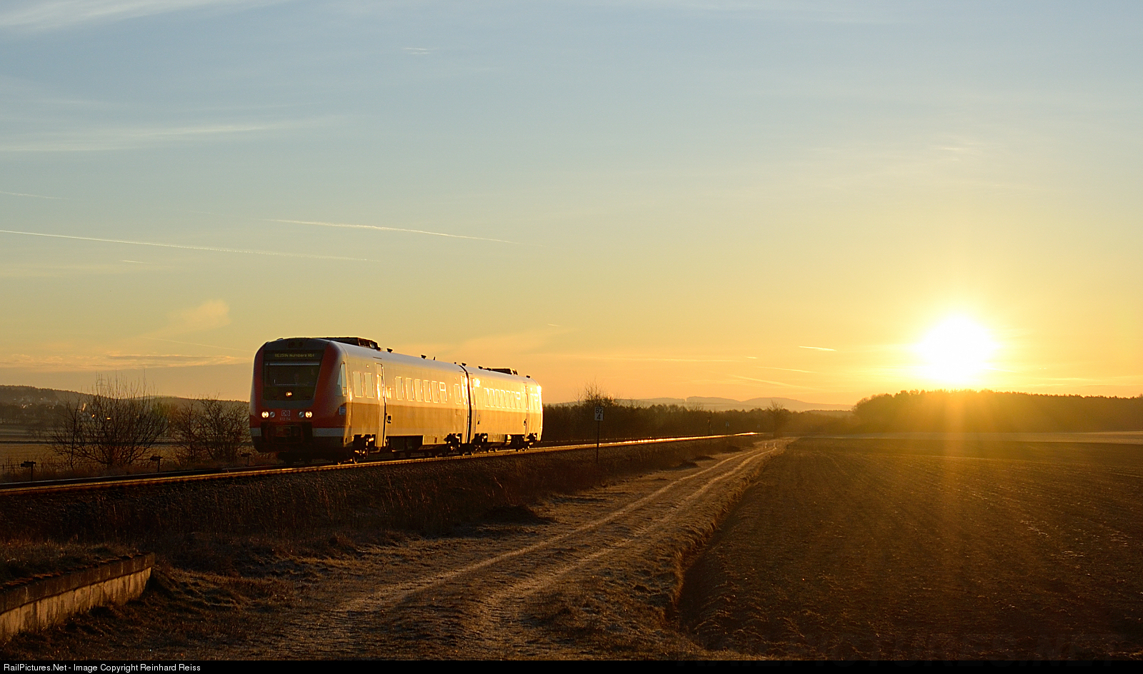 | Few minutes after sunrise 612 114 / 614 from DB Regio passes Freihöls area on the way from Furth im Wald to Nuremberg. |