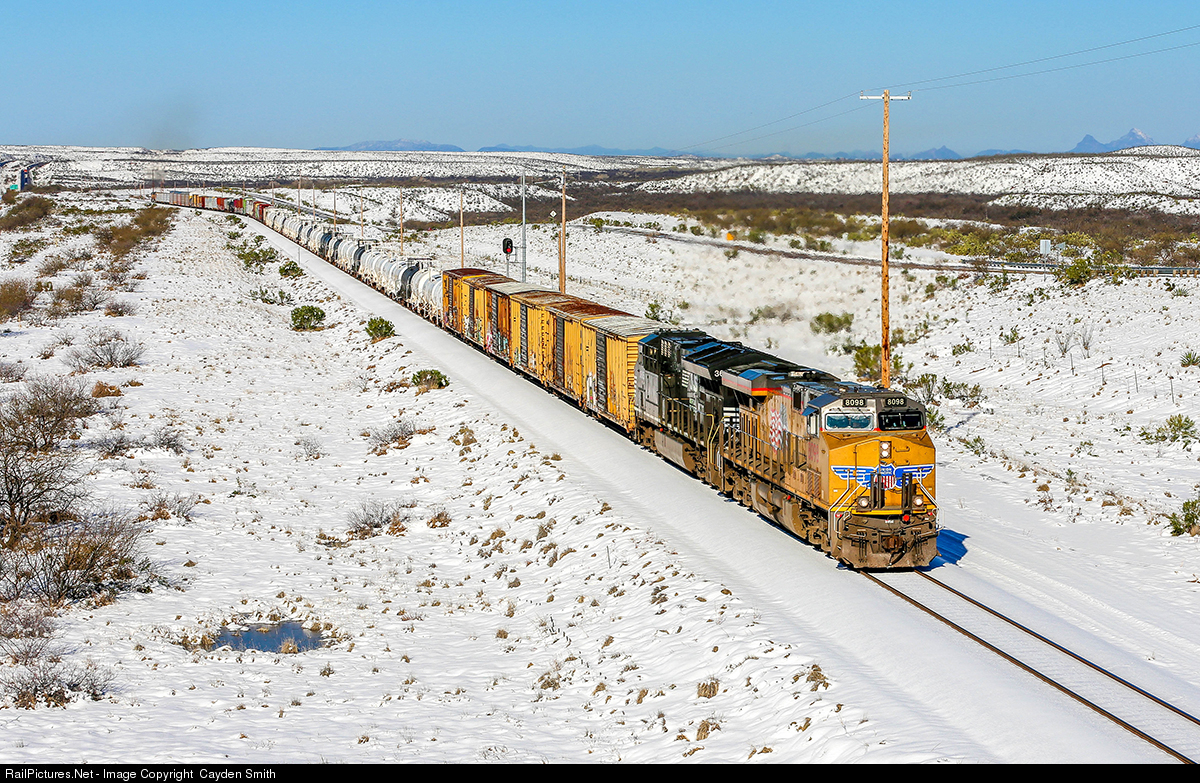An extremely rare opportunity occurred on the morning of February 23rd, snow stuck overnight in Vail, AZ leaving a beautiful snow covered morning. UP 8098 leads a light manifest EB through Pantano