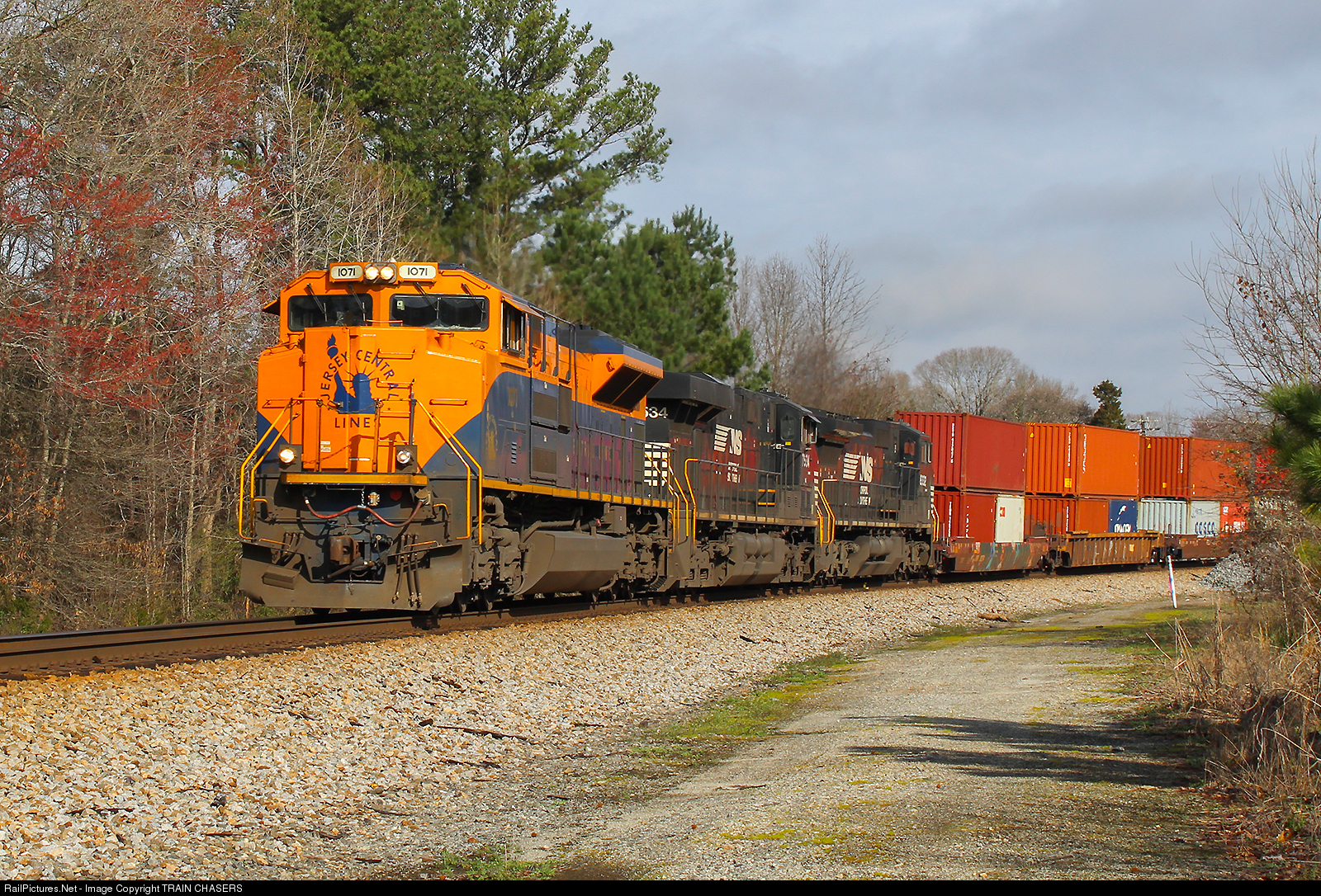 NS 221 makes a southbound run for Atlanta, GA with the Central RR of NJ Heritage leading the way with 2x NS units trailing.