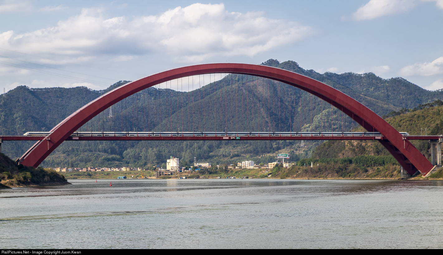 CRH1E sleeper EMU passes through Zhaoqing Xijiang Bridge on South-Guangzhou Railway.