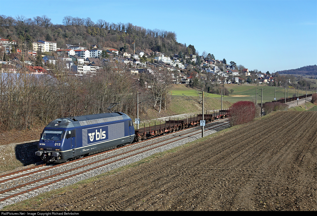 | A very clean BLS Re 465 is pulling empty freight cars Singen (Hohentwiel) - Basel (- Dunkirk, France). |