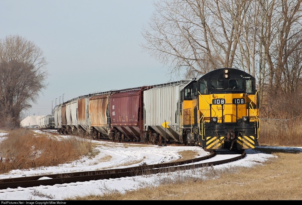 | The crew of an ETR local work industries and switching work around Ojibway in Windsor's west end. Here they are grabbing a cut of loaded hoppers for ADM that were staged on a spur originally used to access the Windsor Salt Mine. The mine is still very much operational but no longer receives rail service from ETR. The spur is used to store/stage cars for delivery to a large ADM facility nearby now. |