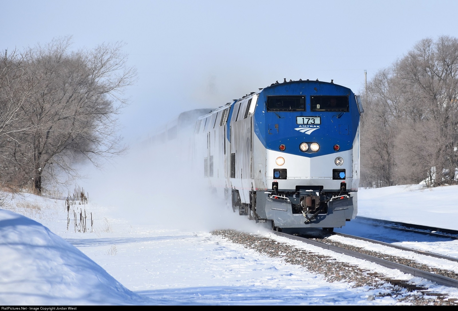 | Amtrak 8 flies through Big Lake East towards its next destination in St. Paul with 3 units on point. Not long after I took this, former Amtrak CEO Joe Boardman passed away from a stroke. Rest in Peace Mr. Boardman, thanks for the work you've done. |
