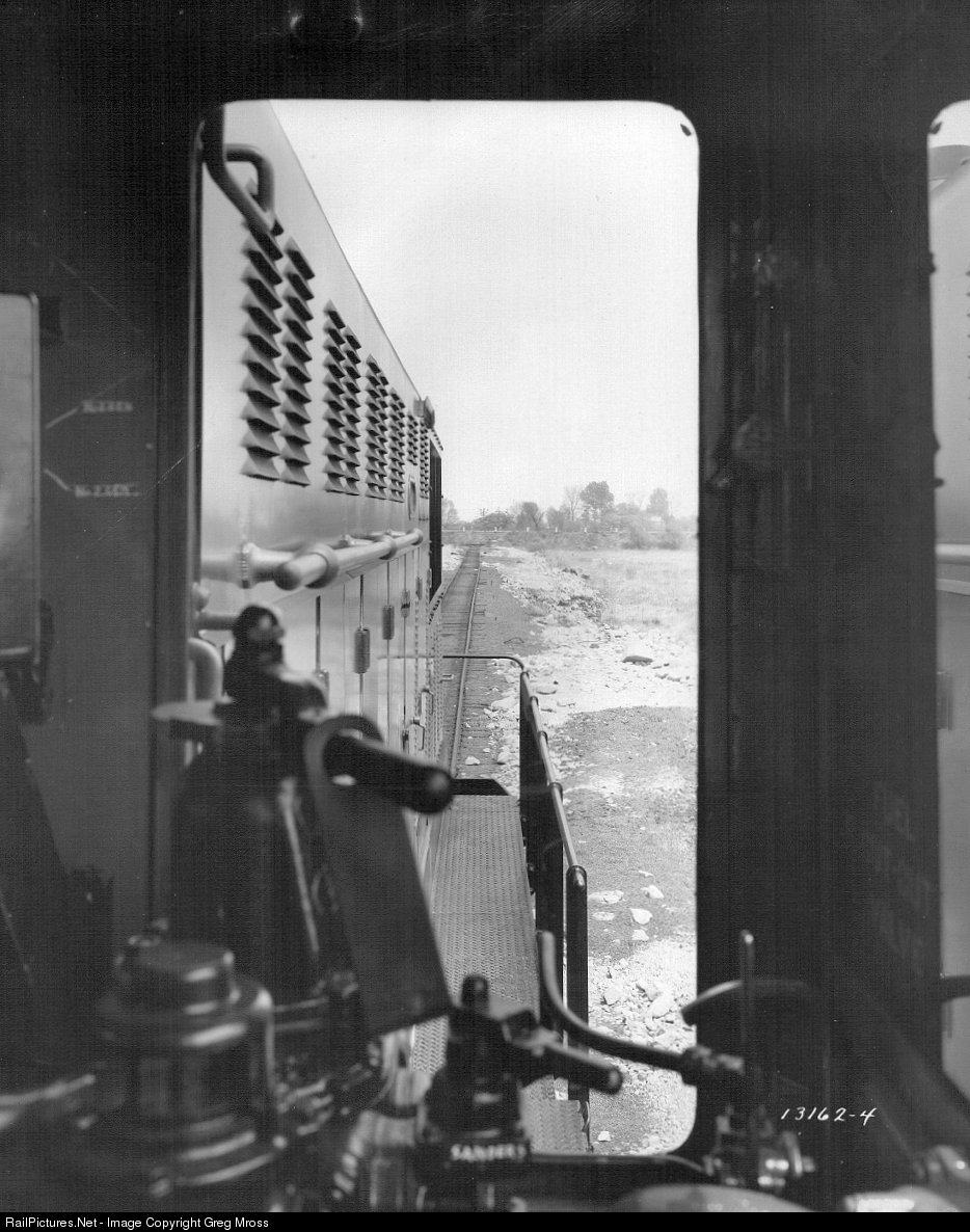Builders photo of the cab interior of EJ&E Baldwin #100. This is a companion photo to #689849. This is another photo that was attached to a letter to the C&NW to entice them into considering the big twin engine Baldwin. Photo from my collection.