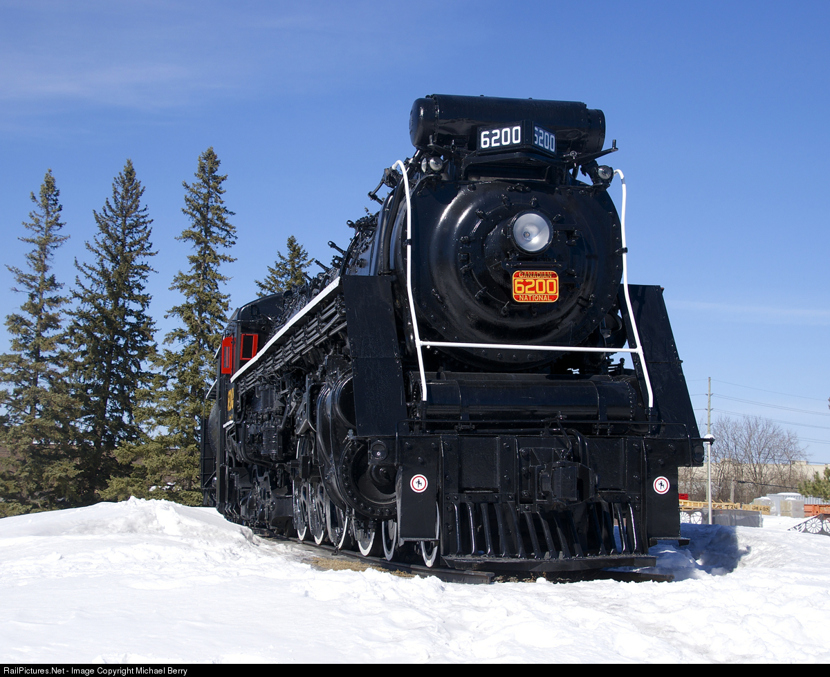 Built by MLW in 1942, 4-8-4 CN 6200 is now on display in a park outside the Canada Science and Technology Museum.