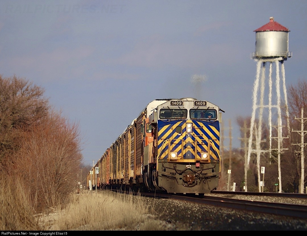 CREX 1409 leading a Westbound vehicle train to Fort Madison, Iowa.