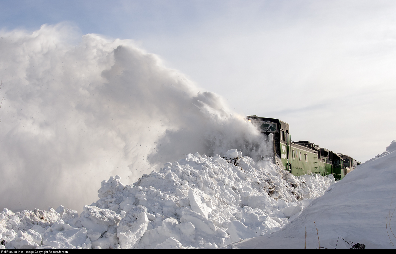 Ground Level view of Rotary 972552 clearing snow dragged down from cut south of Stanton on ZAP Line.