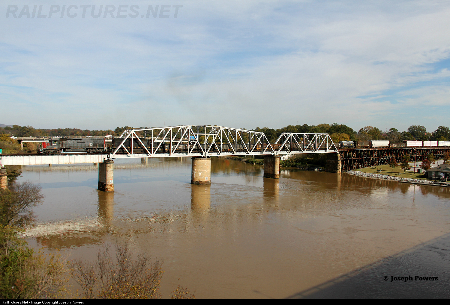 Alabama and Tennessee River Railway train GS1 is crossing the Coosa River in Gadsden, Alabama and in a few more miles reach its destination the yard in Gadsden. The train is powered by ATN SD40T-2 5387 and ATN SD40R 7371.