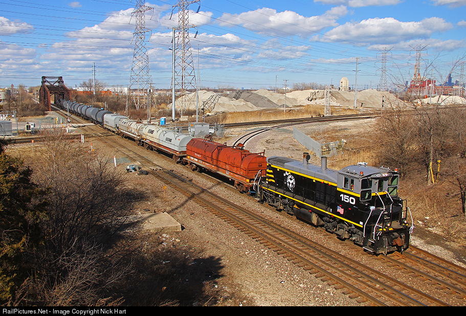 | BRC 150 south leads the industry local through Nerska/LeMoyne on a sunny afternoon in Chicago. Charter Steel and Best Foods were the two industries switched today. Up ahead at Archer Avenue, the local would hold for a northbound ethanol train before making the final trek home to Clearing Yard. |