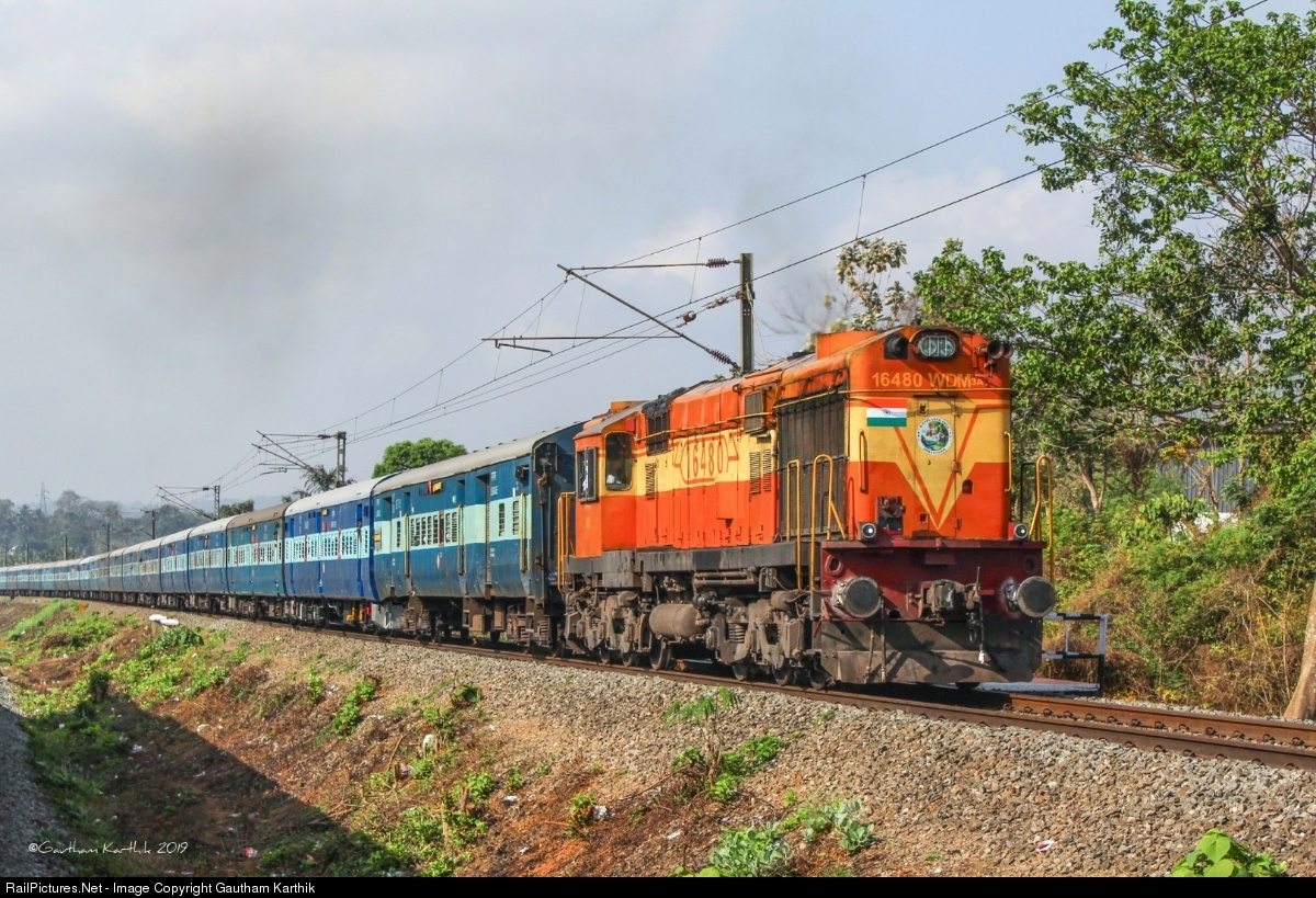 RailPictures.Net Photo: 16480 Indian Railways WDM-3A at Wadakkancheri, India by Gautham Karthik