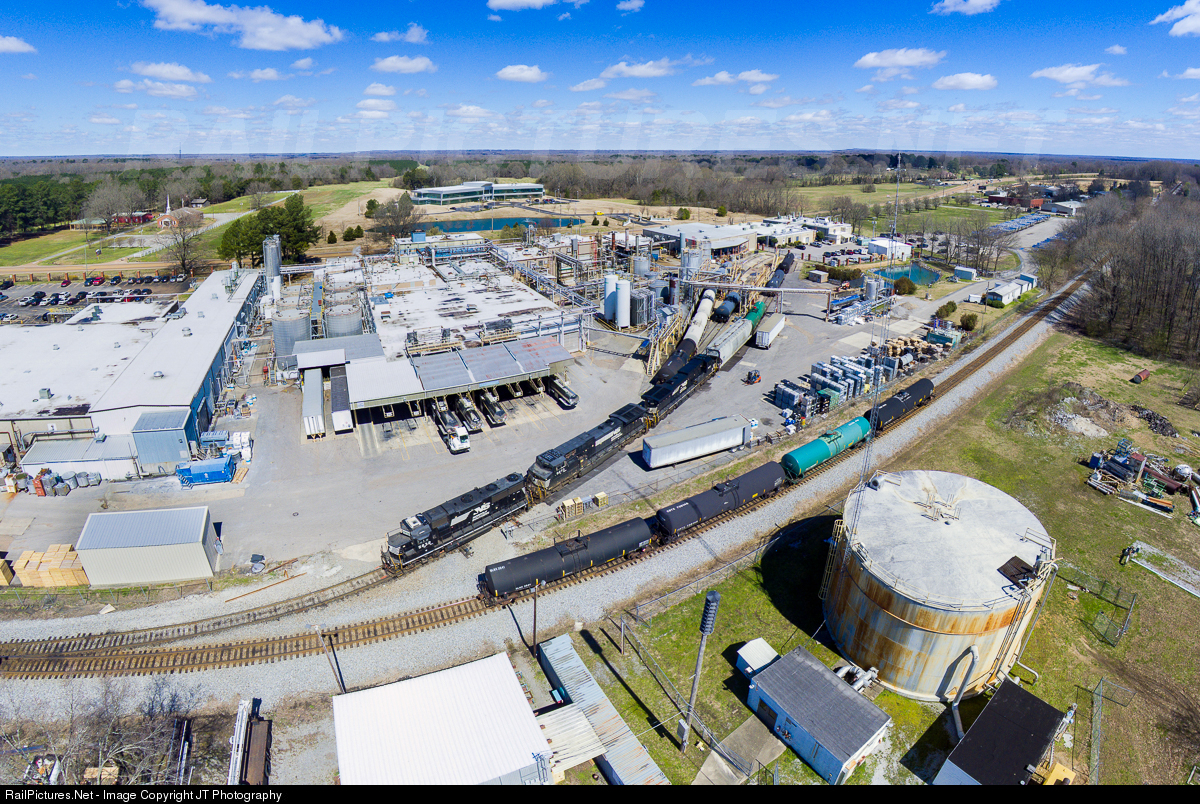 | NS 5832 leads NS A02 as it switches AOC Aliancys at Piperton, Tennessee. The road power behind 5832 was for some reason added in Rossville, TN after the train was turned at the intermodal facility. AOC Headquarters can be seen in the background. |
