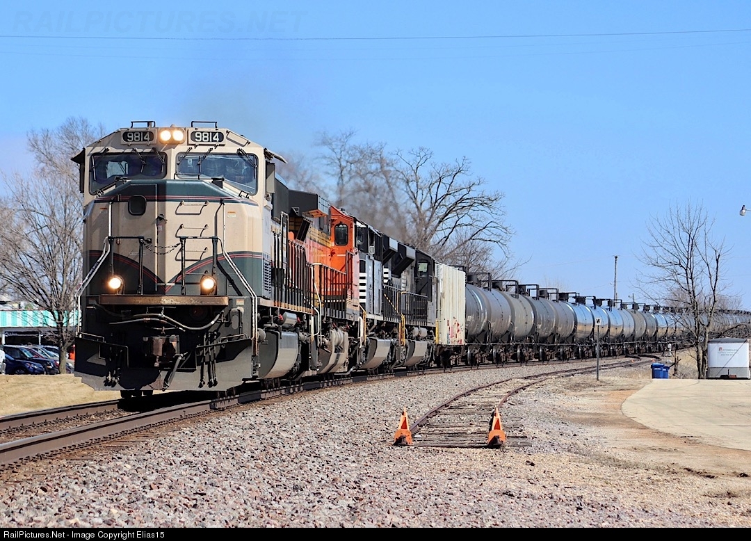 BNSF 9814 leading a train to Watertown, South Dakota on the BNSF Aurora Sub. This train sat at Cicero for about 24 hours prior.