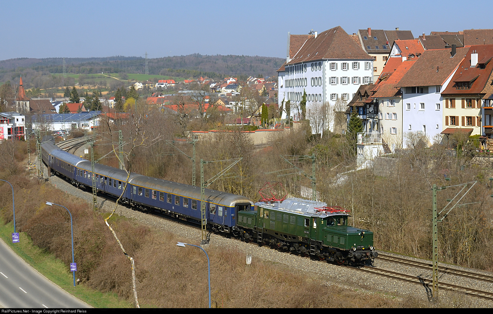 | E 94 088 from GES passes the picturesque old town of Engen with a special charter from Nuremberg to Constance. |