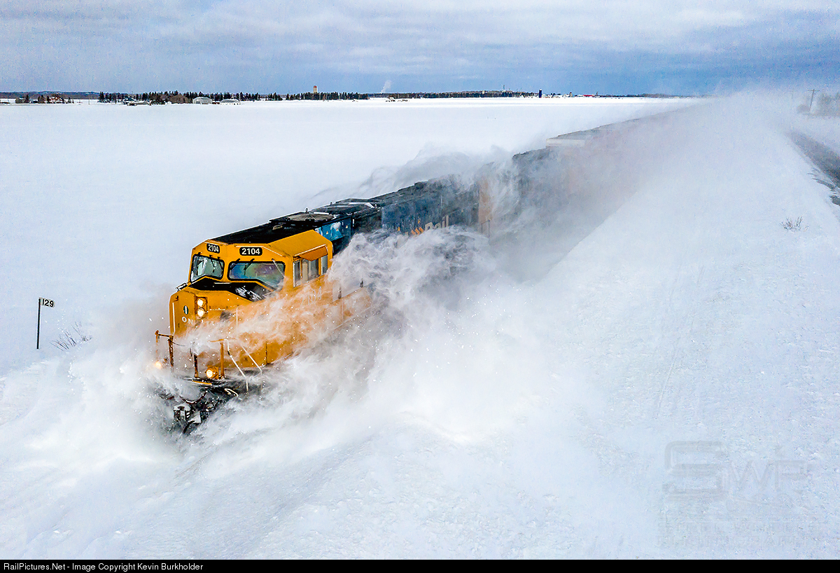 | Ontario Northland Railway has been challenged heavily by weekly snowfall this winter that has taken a toll on traction motors and operations as a whole. On March 16, following an overnight snowstorm, Ontario Northland train 214-16 is breaking drifts that had JUST been cleared two hours earlier by the northbound train 113. |