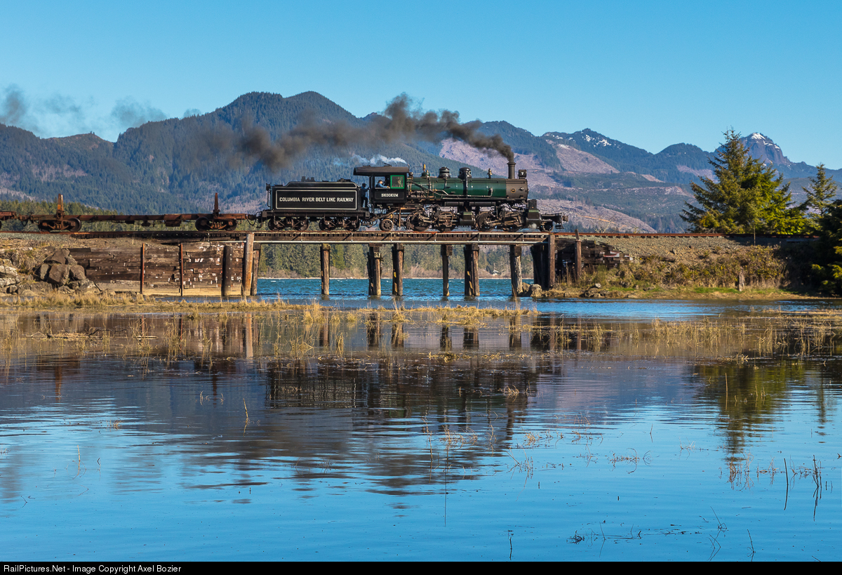 "Skookum", a 2-4-4-2 Mallet Baldwin steam locomotive built in 1909, and completely rebuilt over the last 15 years, is crossing the 835 bridge near Wheeler, OR on the Oregon Coast Scenic Railroad during an incredibly high tide. There is no better backdrop for this remarquable piece of American railroad history!